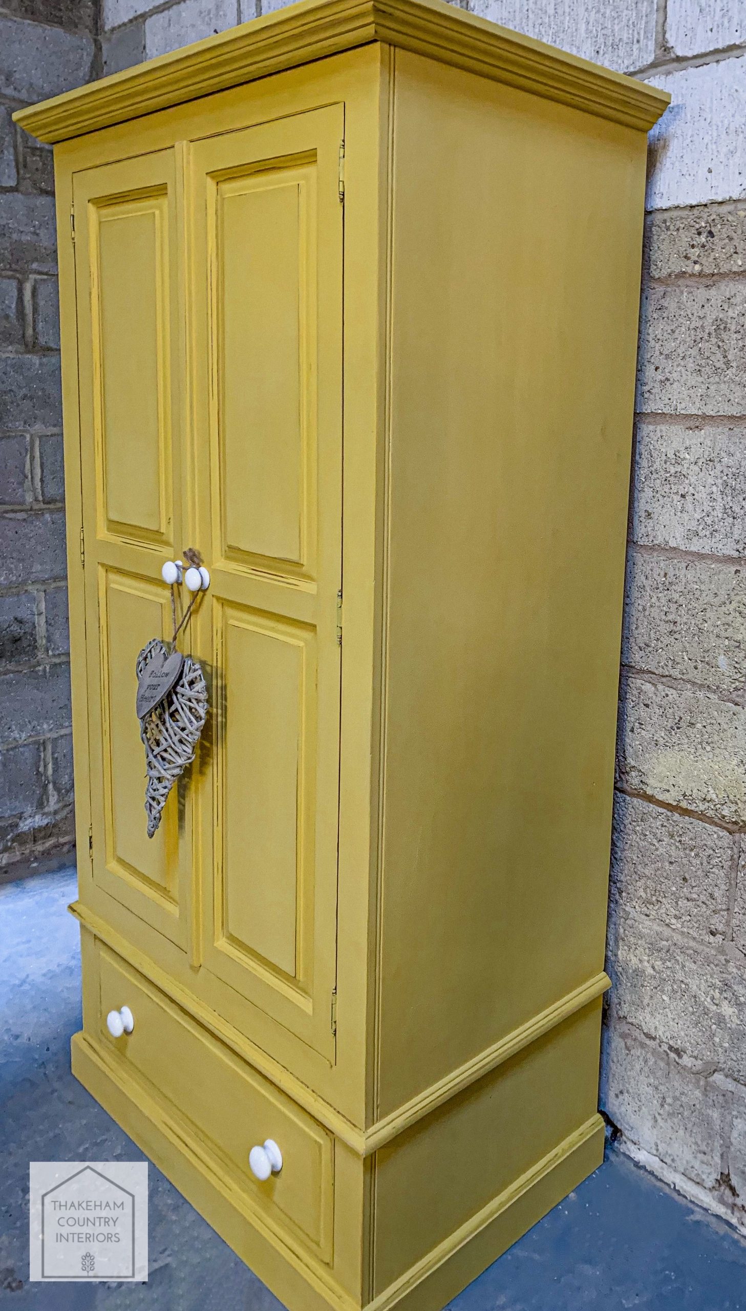 Measurements: 191cm tall, 63cm deep, 100cm wide. Measured at widest points (cornice). Separates into two pieces (top double cupboard section, drawer section), requires easy screwing together (screws included).